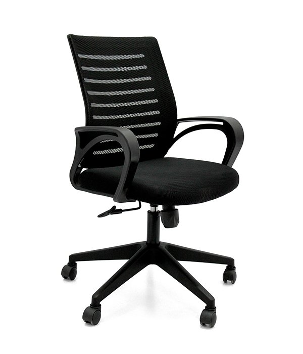 Honda medium back office chair comes with Nylon base and heavy duty Nylon wheels, class IV hydraulic, back fixed arms